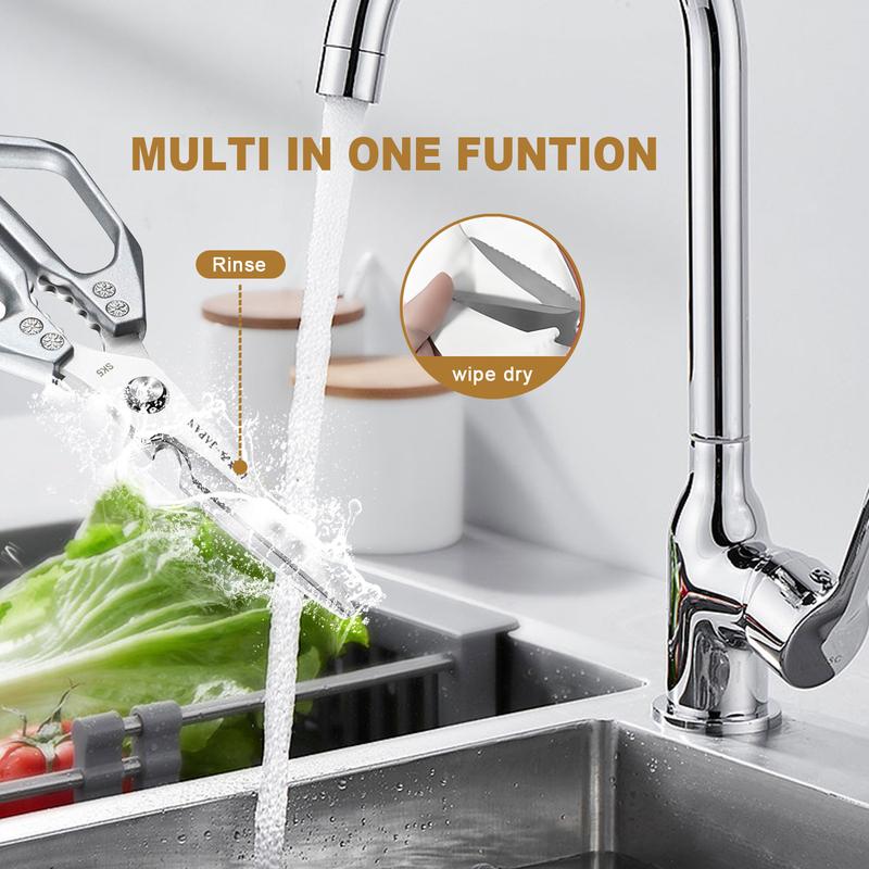 Upgrade your kitchen with these premium heavy-duty stainless steel shears, built to cut through chicken, turkey, meat, vegetables, seafood, herbs, and even small bones with ease. Designed for home cooks and professionals, these scissors offer sharp precision, durable construction, and comfortable handling for any kitchen task.